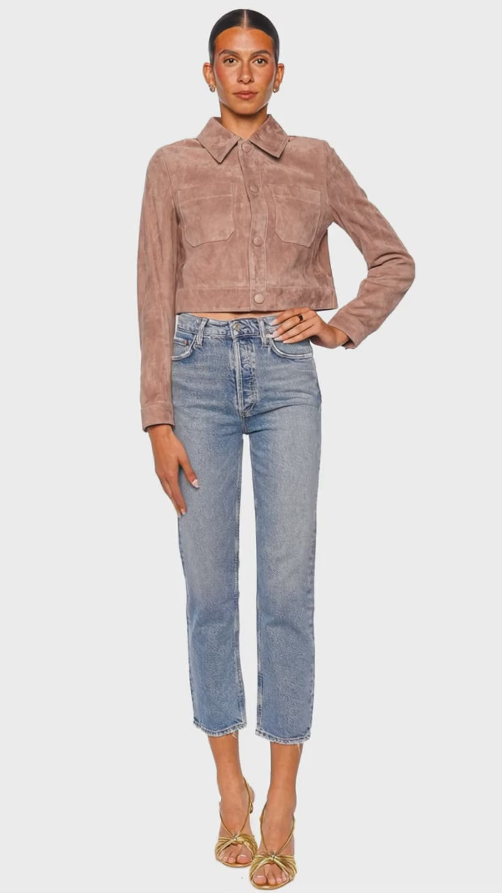 Channel effortless vintage cool with these 90's inspired high rise crop jeans, crafted in a premium light wash denim. The pinch waist design offers a flattering, contoured fit that accentuates the silhouette while maintaining ultimate comfort. With their straight leg and raw hem, these jeans strike the perfect balance between timeless style and modern sophistication. Pair them with a tailored blazer or a silk blouse for a chic day-to-night ensemble.
