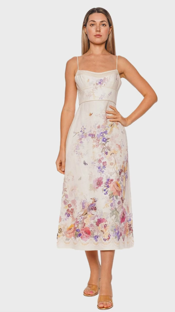 Alchemy Cream Floral Linen Midi Dress