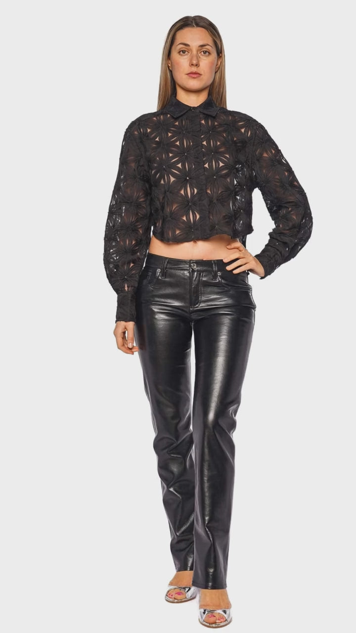 Immerse yourself in the effortless elegance of this exquisite sheer top, blending bold design with delicately embroidered fabric. The intricate floral pattern creates an artistic façade that captivates and charms, perfect for making a statement. This long sleeve top adds a layer of sophistication to any ensemble, making it suitable for both day and nighttime occasions.