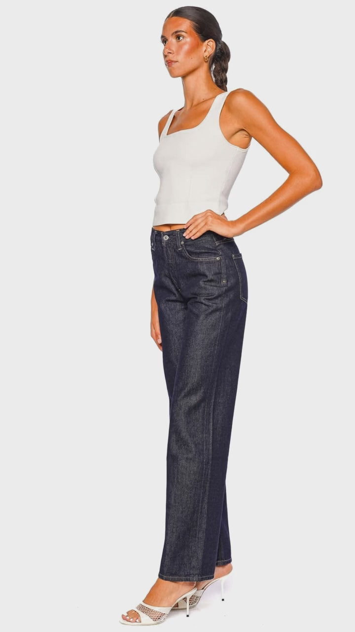 Indulge in luxurious comfort with these Annina 33" Juno Wide-Leg Jeans, designed to accentuate your silhouette with timeless appeal. Crafted from premium weightless denim, these jeans feature a sophisticated dark wash that seamlessly blends classic and contemporary styles. With their flattering high-waist design and wide leg fit, they create an effortlessly chic look for day or night. Pair them with a fitted top and strappy heels for an elegant, elongated silhouette.