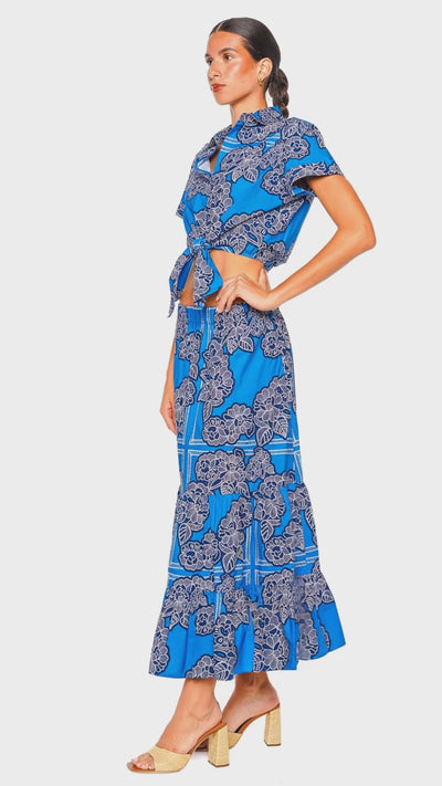 Elevate your wardrobe with the Asbury Cobalt Floral Tie Front Crop Top, a statement piece that combines modern design with a cascading floral motif. Crafted from premium fabric, this top boasts a flattering silhouette and vibrant cobalt hue, perfect for turning heads. Designed for the fashion-forward dresser, it offers unmatched versatility, whether paired with a sleek skirt or tailored trousers.