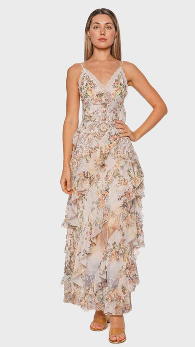 Twilight in Istanbul Ruffled Slip Maxi Dress