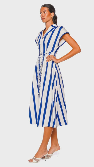 Aubrey Navy Striped Short Sleeve Midi Dress