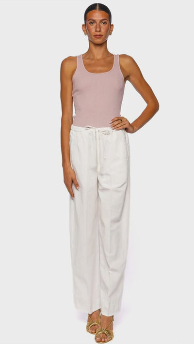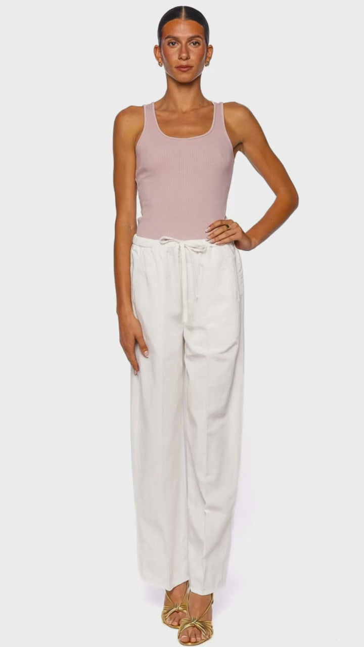 Elevate your everyday with the Aurora Cream Wide Leg Pull On Pant, crafted from a softly structured, high-quality fabric that drapes effortlessly. The relaxed silhouette and elasticized drawstring waist offer both comfort and contemporary sophistication, making these pants perfect for refined lounging or chic city outings. Pair them with a fitted tank, throw on over a bikini, or a tailored blouse for a versatile, polished ensemble that transitions seamlessly from day to evening.