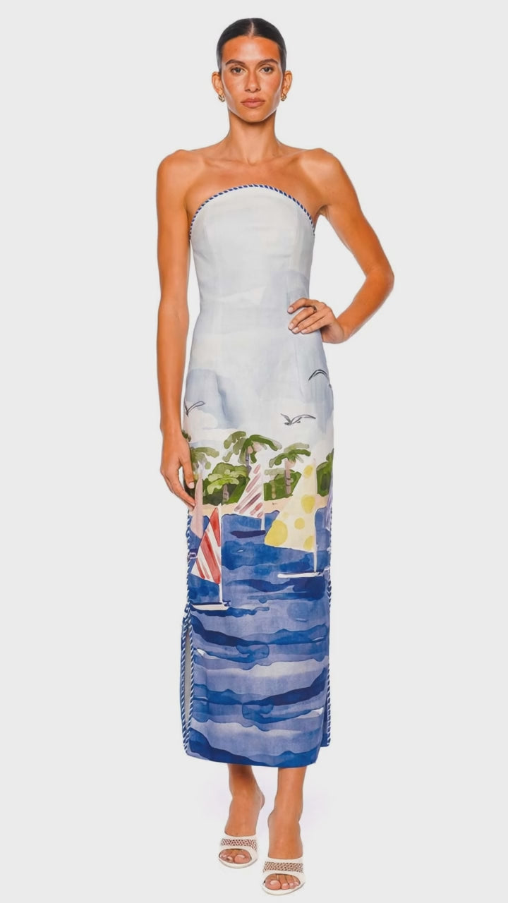 Ava Bustier Strapless Nautical Print Maxi Dress