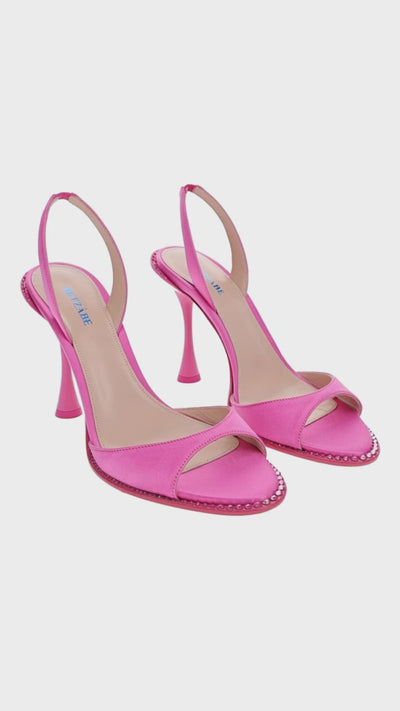 These fuchsia statement slingback heels are elevated with tonal crystal trim.