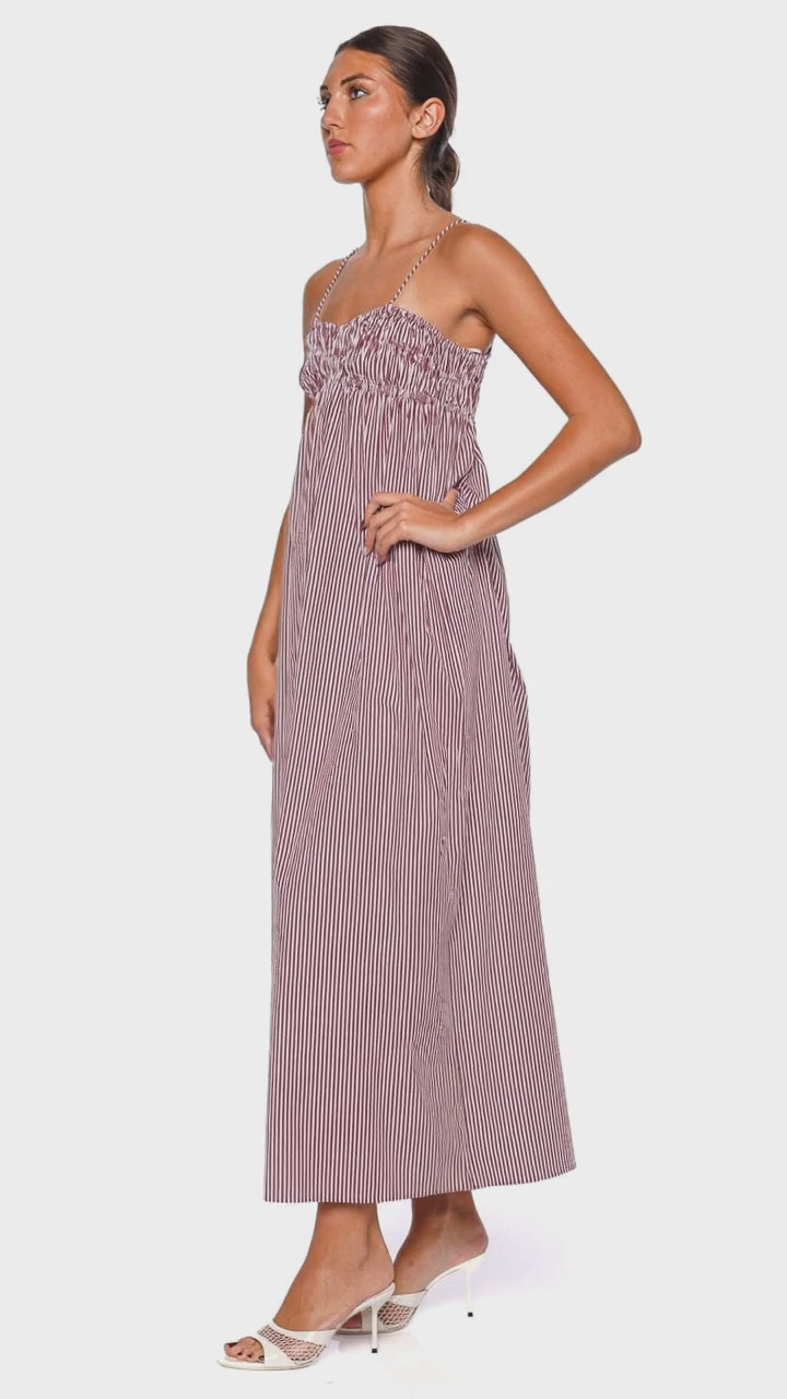 Birgit Burgundy Stripe Gathered Maxi Dress