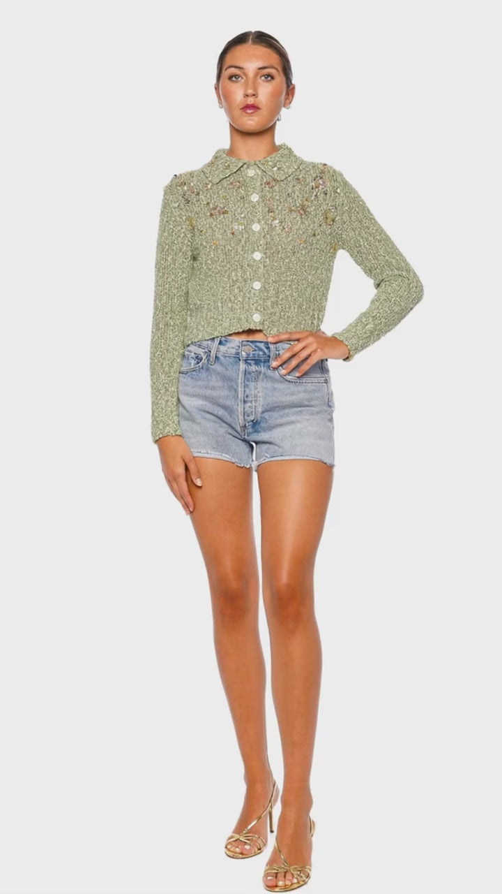Boucle Cardigan Aqua Vanilla Long Sleeve Cropped Cardigan