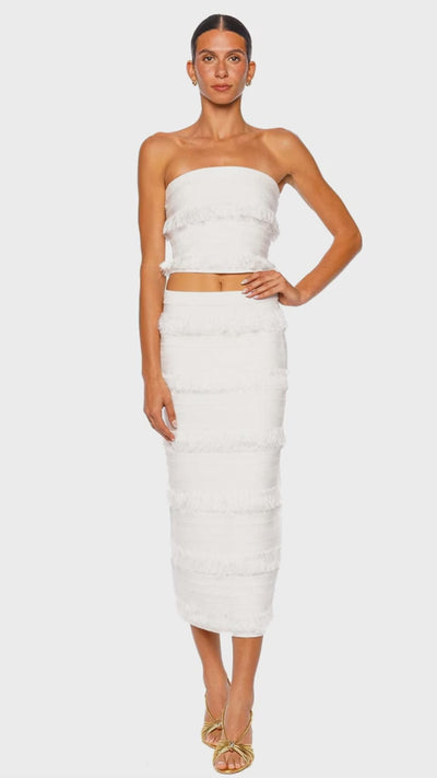 Cairo Ivory Fringe Knit Tube Top