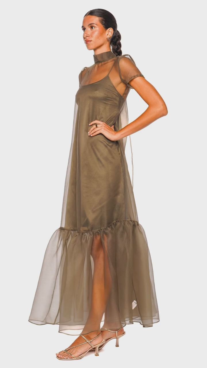 Calluna Thyme Sheer Maxi Dress with Short Sleeves