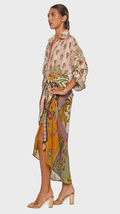 A floral printed button down shirt with an oversized, relaxed fit for versatile styling.