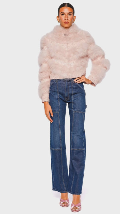 Immerse yourself in the lavish allure of the Curran Pink Luxe Faux Fur Jacket. This exquisite piece is crafted from plush pink faux fur, lending an air of opulence and modern sophistication to your wardrobe. The intricate design features sequined embellishments that catch the light beautifully, making it perfect for evening events or a stylish day out. Pair this jacket with high-waisted denim and heels for a chic and contemporary look.