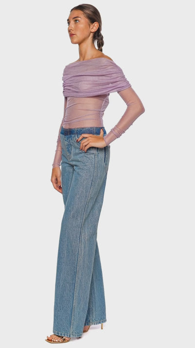 These jeans feature a deconstructed waistband detail with a mid rise and a straight leg silhouette.