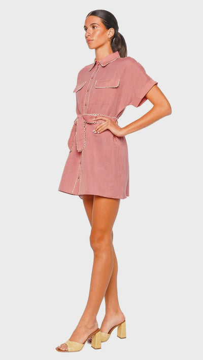 Gul Dusty Pink Belted Drop Shoulder Mini Dress