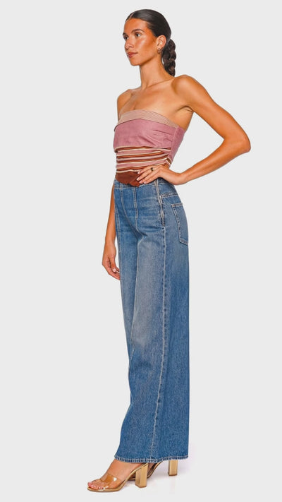 Indulge in the bohemian elegance of the Ebbe Dusty Mauve Strapless Top with its distinctive Barragan Stripe. This piece is a seamless blend of texture and color that exudes sophistication and versatility. Crafted for both relaxed and polished settings, pair it with high-waisted jeans and statement accessories for an effortlessly chic look.