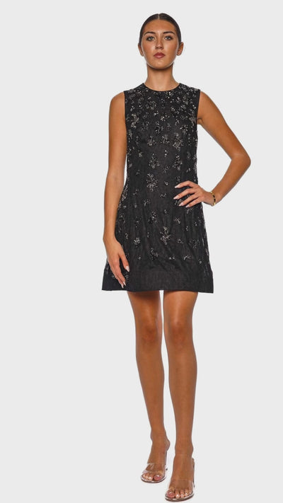 The Evelina Black Sleeveless Embellished Mini Dress is the epitome of sophisticated glamour. Constructed with a luxurious fabric adorned with intricate embellishments, this dress offers an elegant and refined silhouette. Perfect for evening soirees, its sleek design ensures you make a statement wherever you go. Pair it with stilettos and a chic clutch to complete your ensemble.