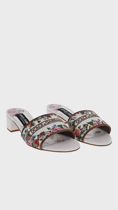Floral Embroidered Block Heel Slide Sandals White Multi