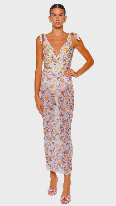 Immerse yourself in the ethereal charm of this off-white maxi skirt, an embodiment of sophistication and floral allure. The delicate blooms set against a sheer fabric create an enchanting silhouette that seamlessly blends elegance with a beach-ready vibe. Perfect for sun-drenched outings, this skirt brings a sense of dreamy romanticism to any look. Elevate your style by pairing it with a matching floral top and sleek sandals for an effortlessly chic ensemble.