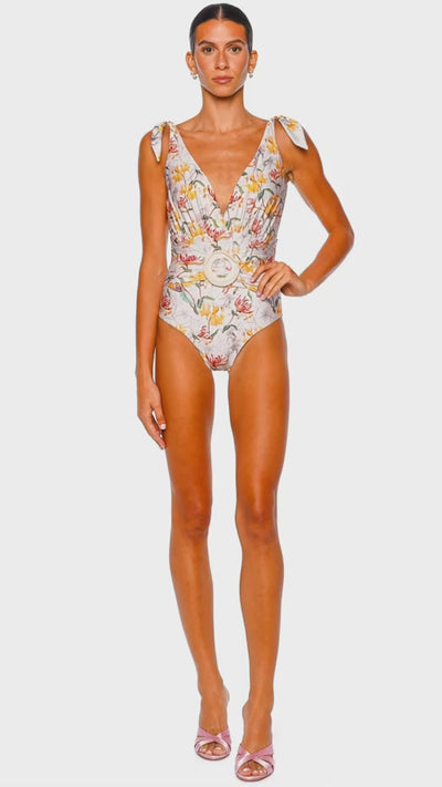 Honey Flower Plunge One Piece Swimsuit