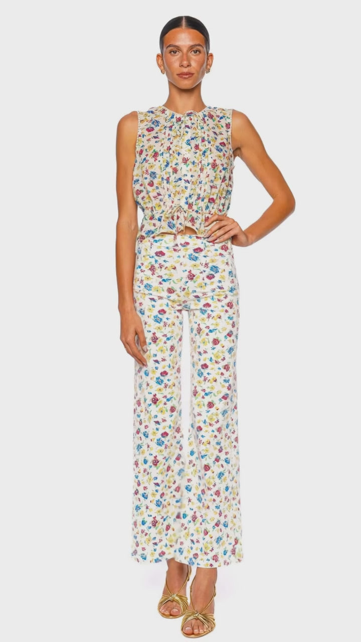 These elegant straight leg pants feature a refined floral print on a crisp white background, offering a fresh and sophisticated take on classic tailoring. Crafted from premium fabric, the design is elevated with chic patch pockets and a flattering high-rise silhouette. Perfect for elevating your daytime look or adding a playful touch to evening ensembles, these trousers exude effortless luxury and modern femininity. Pair them with a silk blouse and strappy heels for a polished, trend-forward outfit.