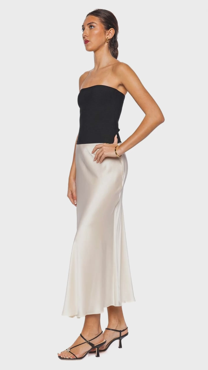 This Ida Black Strapless Top exudes effortless sophistication with its sleek, ribbed texture and clean lines. The strapless design offers a chic and versatile addition to your wardrobe. Its timeless black hue makes it a staple for both elegant and casual ensembles. Pair with a high-waisted skirt or tailored trousers for a refined and modern look.