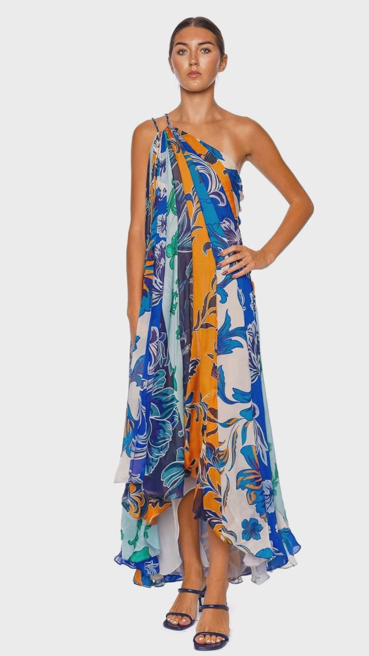 Iris One Shoulder Silk Midi Dress
