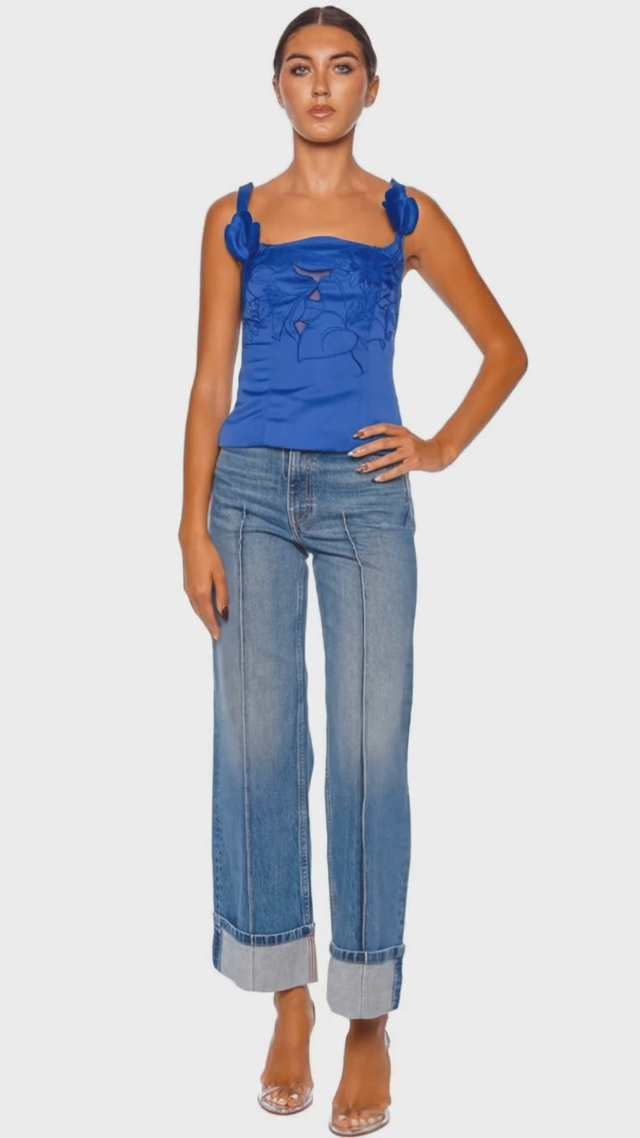 Elevate your wardrobe with the Isadora Lapis Blue Applique Sleeveless Top, a stunning choice that integrates intricate applique detailing for a truly exclusive look. The rich lapis blue hue complements the expertly crafted design, featuring a fitted silhouette that offers both style and comfort. This top seamlessly marries modern elegance with timeless appeal, making it a perfect choice for any high-end ensemble. Pair with sleek tailored trousers and strappy heels for a sophisticated, polished outfit.