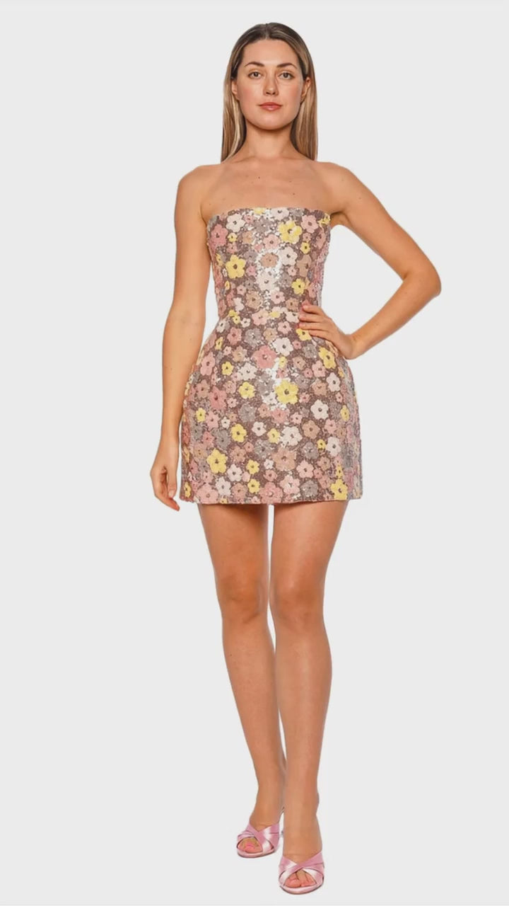Make a statement with the Jasmine Maraya Multi Strapless Sequin Mini Dress, an exquisite blend of shimmering elegance and modern flair. This stunning piece features a captivating blush multi sequin floral pattern on a luxurious fabric, ensuring you shine at any event. Designed for the fashion-forward woman, its sleek silhouette features an internal bustier bodice that exudes confidence and sophistication. Perfect for the dazzling evening soirees, pair it with minimalist heels and bold jewelry for an unforgettable look.