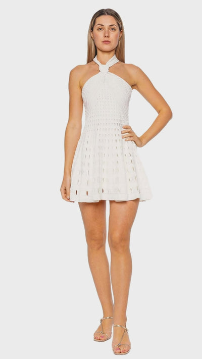Jenna Ivory Eyelet Knit Halter Mini Dress