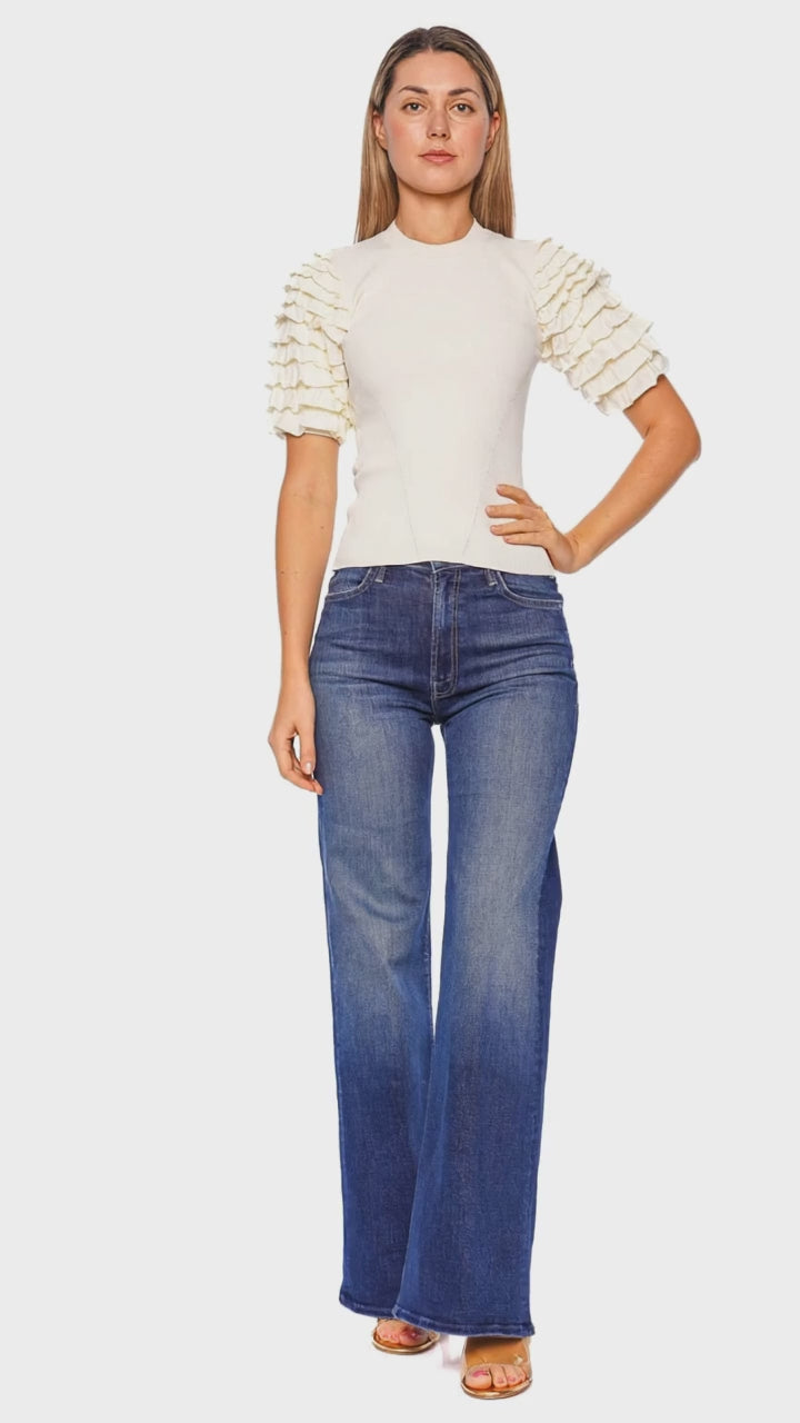Kassia Ruffled Sleeve Ribbed Knit Top