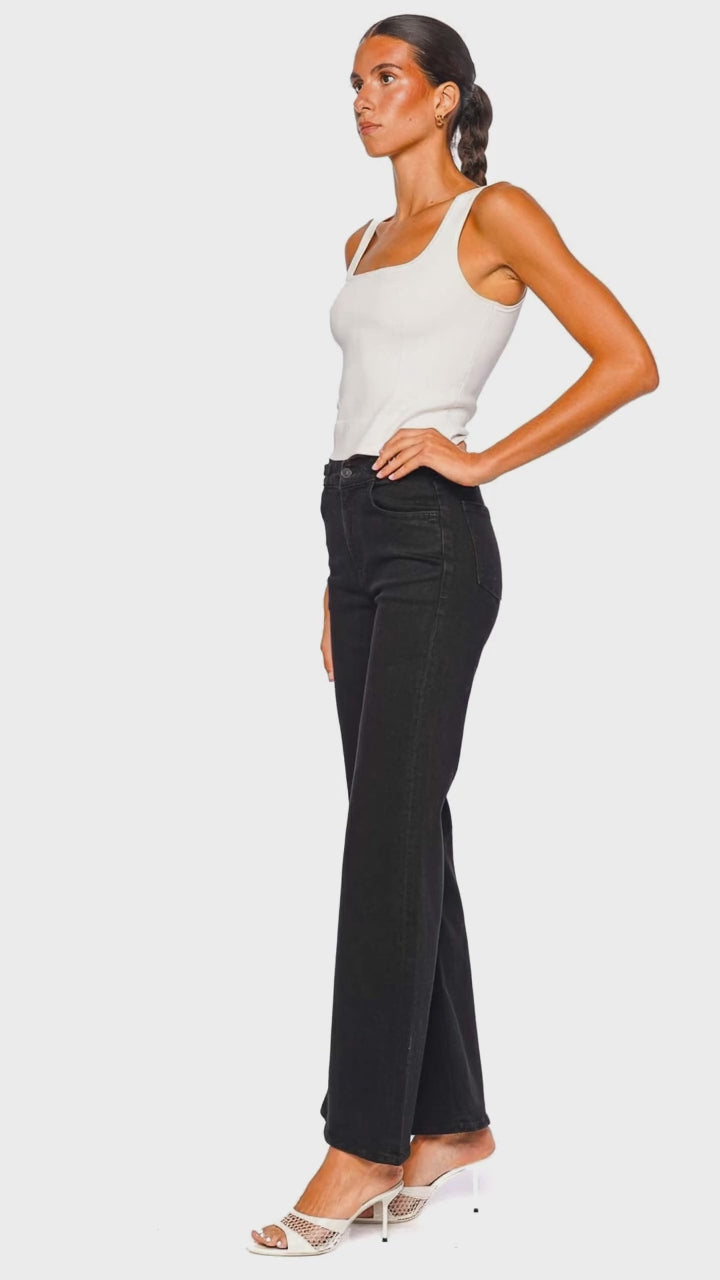 Elevate your denim collection with the Kimberly Rich Black Flare Horsebit Jeans. These jeans exude sophistication with their dramatic flare silhouette, crafted in a deep black hue that seamlessly complements any wardrobe. The addition of horsebit detailing offers a modern twist on a classic design, making these jeans a stylish choice for both casual and chic settings. Pair with a tailored blouse and stiletto heels for an effortlessly elegant look.