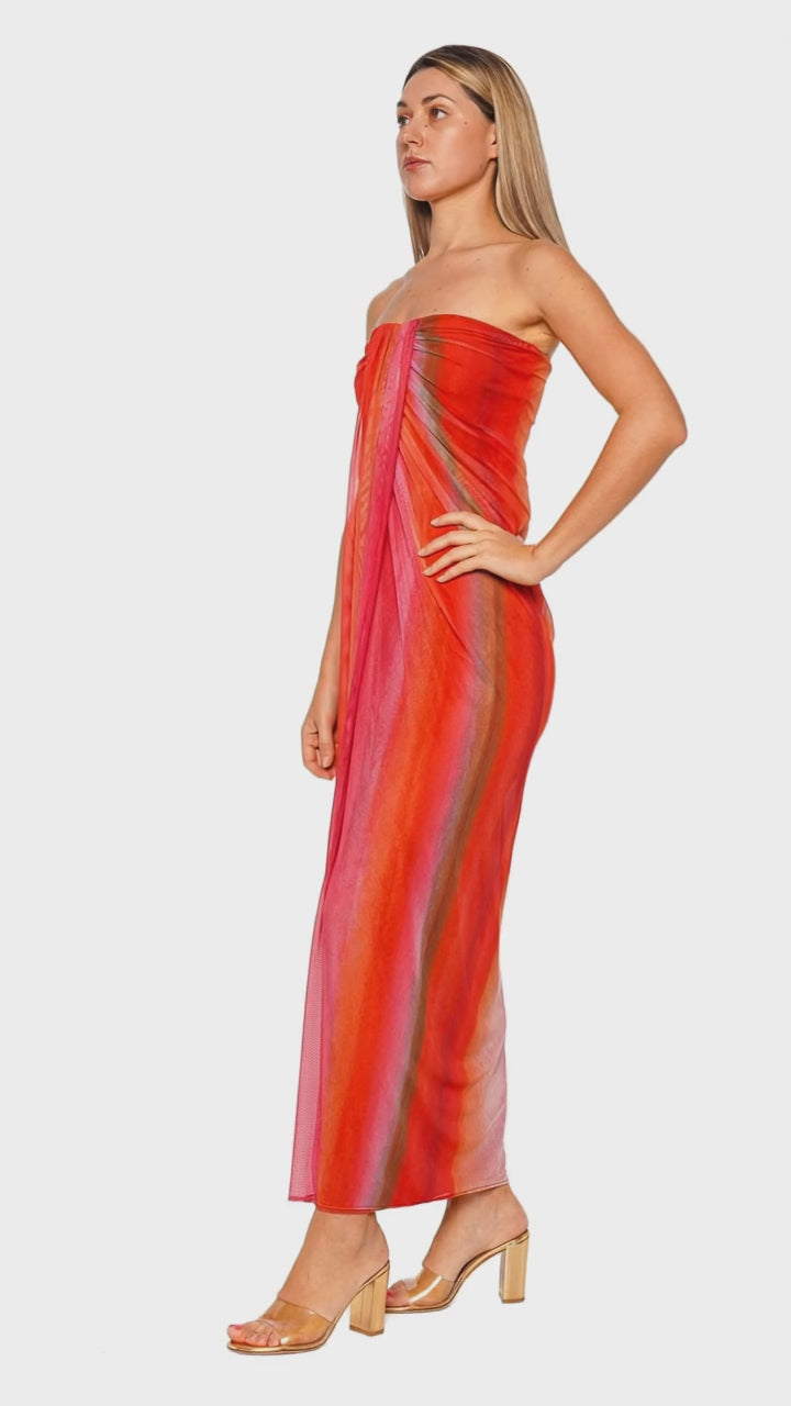 Embrace radiant elegance with the Lena Strapless Maxi Dress, made from luxe mesh fabric that flows effortlessly around your silhouette. Its vibrant hues create a mesmerizing effect, perfect for making a bold statement at any event. Crafted to perfection, this piece offers a seamless blend of sophistication and contemporary style, ideal for both glamorous soirées and beachside dinners.