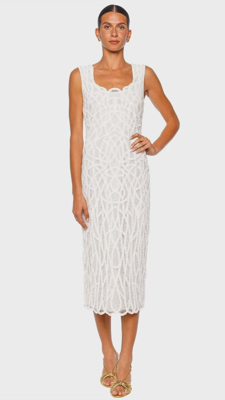 Leonora Macrame White Sleeveless Midi Dress