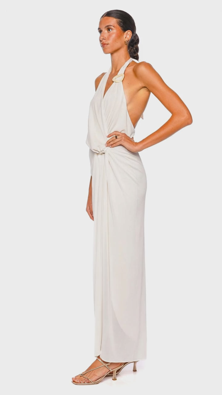 Embrace opulence with the Liz Ivory Halter Neck Maxi Dress, crafted to perfection for elegant soirées. This gown drapes gracefully with a fluid silhouette, accentuated by a distinctive halter neck that adds a touch of sophistication. The luxurious fabric cascades into a floor-grazing length, ensuring a breathtaking entrance at any event. Pair it with minimalistic sandals and a sleek clutch for an unforgettable evening look.