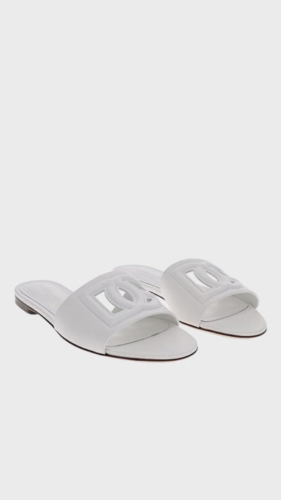 White Logo Leather Flat Slides