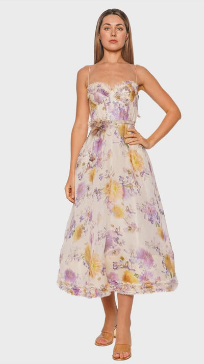 Luna Cream Dahlia Ruffle Corset Midi Dress