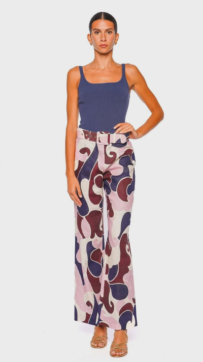 These Mayflower pants exude elegance with their wide-leg silhouette and vibrant Petal Wave print in a captivating blush palette. The luxurious linen fabric offers a perfect drape, ensuring a graceful flow with every step. These pants provide an exquisite blend of comfort and high fashion, making them a statement piece in any wardrobe. Pair them with a fitted top and heels to elevate your style for both day and evening affairs.