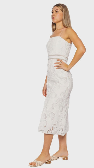 Merissa Ivory Embroidered Eyelet Midi Dress