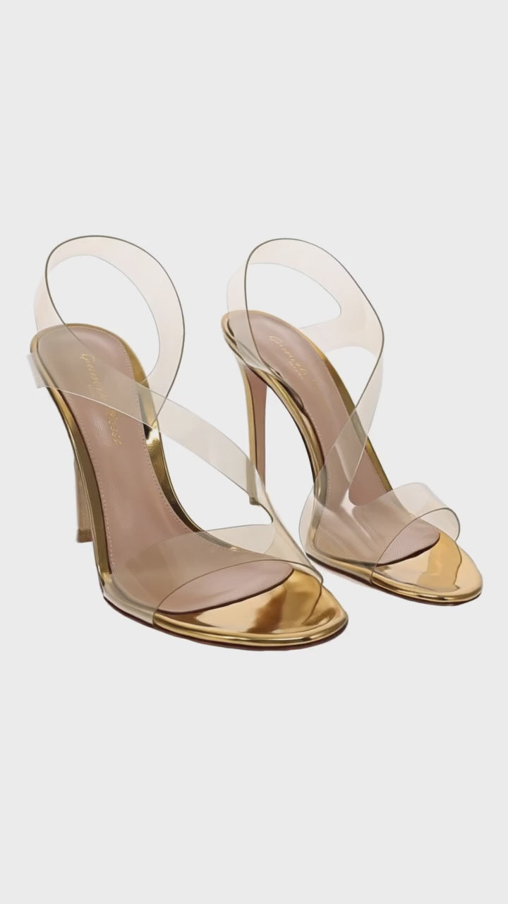 Semi-translucent PVC straps highlight these slingback sandals for a leg-lengthening effect.