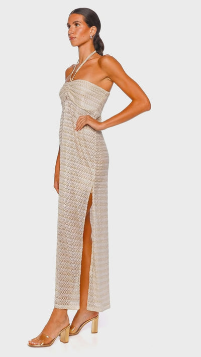 The Mila Gold Strapless Maxi Dress is a statement of timeless elegance and effortless glamour. Crafted from a luxurious gold-hued fabric, this strapless design features a chic keyhole detail at the bust, offering a modern twist to a classic silhouette. Perfect for beachside soirées or sunset dinners, this piece promises to make a sophisticated impression. Complement the look with delicate jewelry and strappy sandals for an elevated finish.