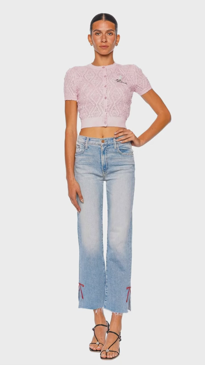 Pink Pointelle Knit Short Sleeve Cropped Top