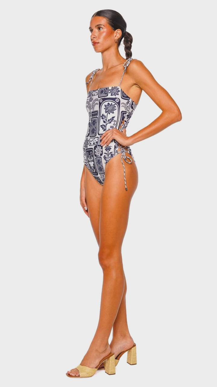 Posh Batik Tie Shoulder One Piece Swimsuit