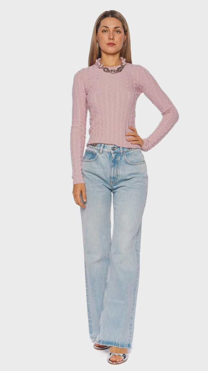 Pink Cable Knit Chain Necklace Sweater