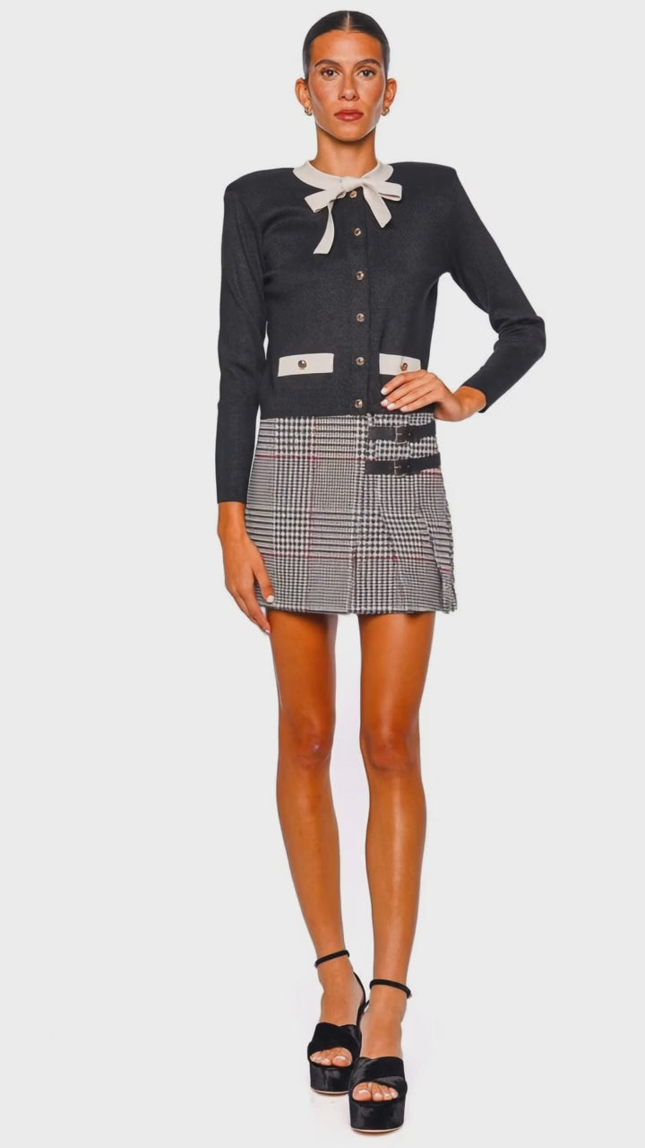 This sophisticated mini skirt captures the essence of timeless style with its classic glen plaid pattern. Its clean lines and chic design make it a versatile piece perfect for both daytime and evening looks. Featuring an asymmetrical design, this skirt promises a refined fit and an opulent finish. Pair it with a fitted blouse and heels for an effortlessly chic ensemble.