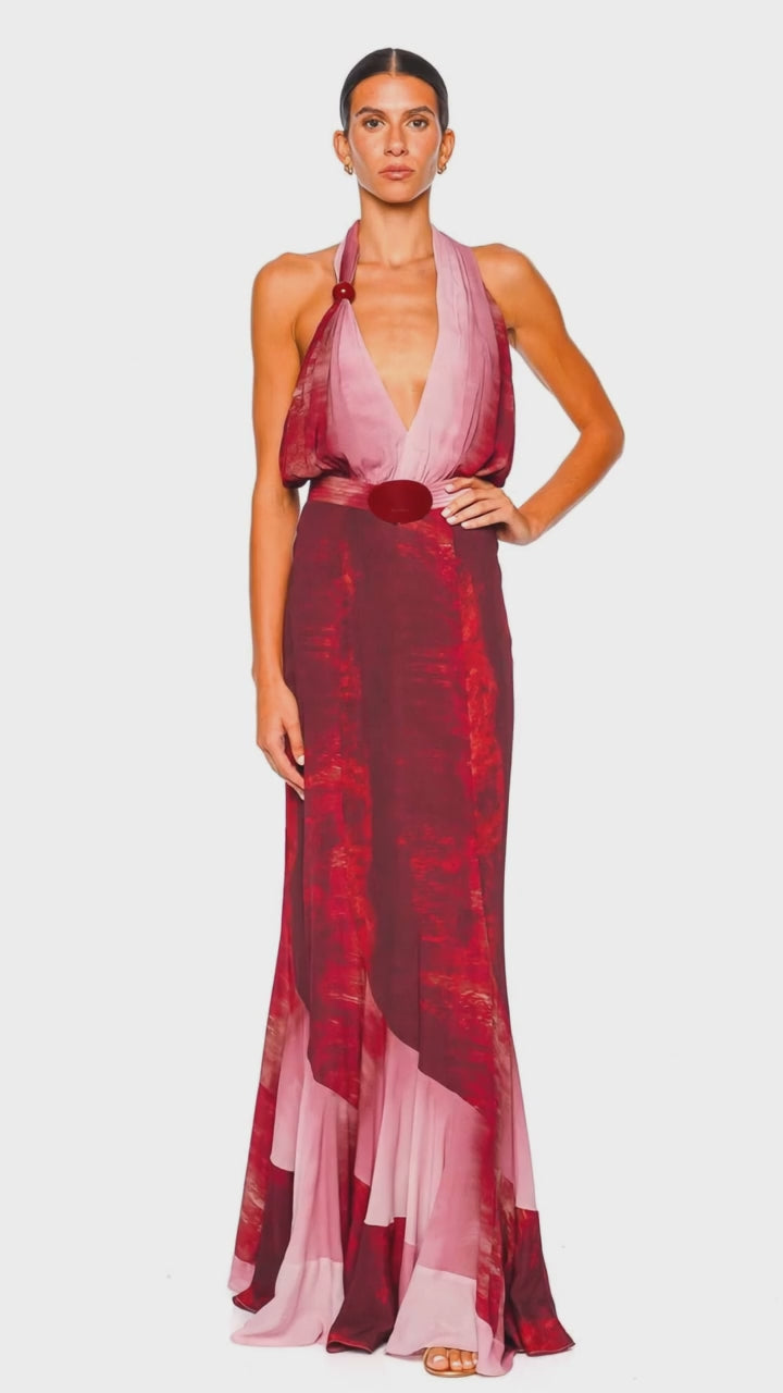 Raisa Degraded Red Halter Maxi Dress