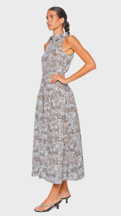 Sky Toile Sleeveless Collared Midi Dress