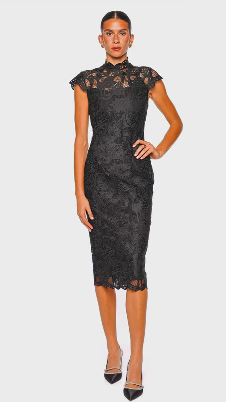 Rosaline Black Guipure Lace Midi Dress