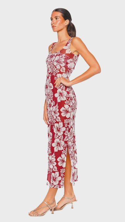 Embrace island luxury with the Roselle Hibiscus Red Strappy Mesh Maxi Dress, a stunning piece that captures the essence of tropical elegance. The dress features a delicate mesh overlay adorned with vibrant hibiscus prints, exuding a bold yet sophisticated allure. Cut for a figure-skimming fit, it offers a sultry silhouette perfect for sun-soaked escapes or evening soirees. Pair this captivating dress with strappy sandals and minimalistic jewelry for an effortlessly chic ensemble.