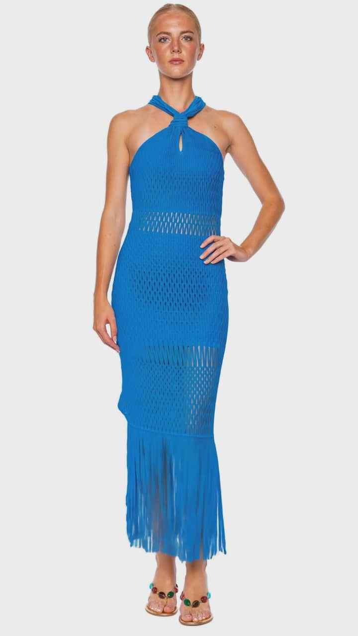 Sanchez Fringe Knit Halter Midi Dress