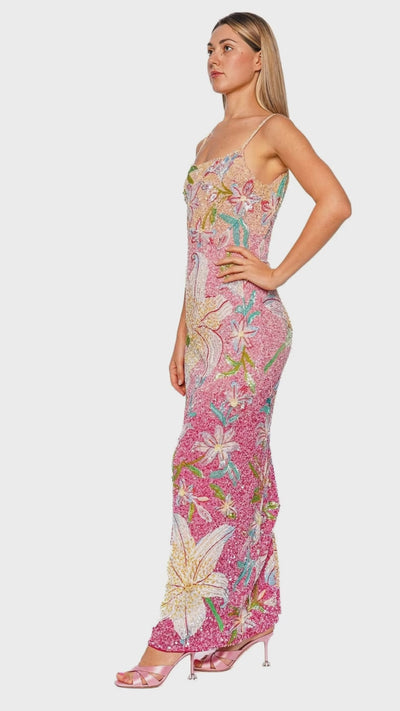 Step into a world of color and elegance with the Sunrise Lily Field Multi Maxi Dress. This breathtaking piece, adorned with vibrant floral motifs, embodies a harmonious blend of sophistication and bold artistry. The luxurious fabric gracefully drapes over the silhouette, offering an exquisite touch perfect for glamorous evenings or sophisticated daytime events. Complement its stunning palette with delicate jewelry and strappy sandals for an unforgettable look.